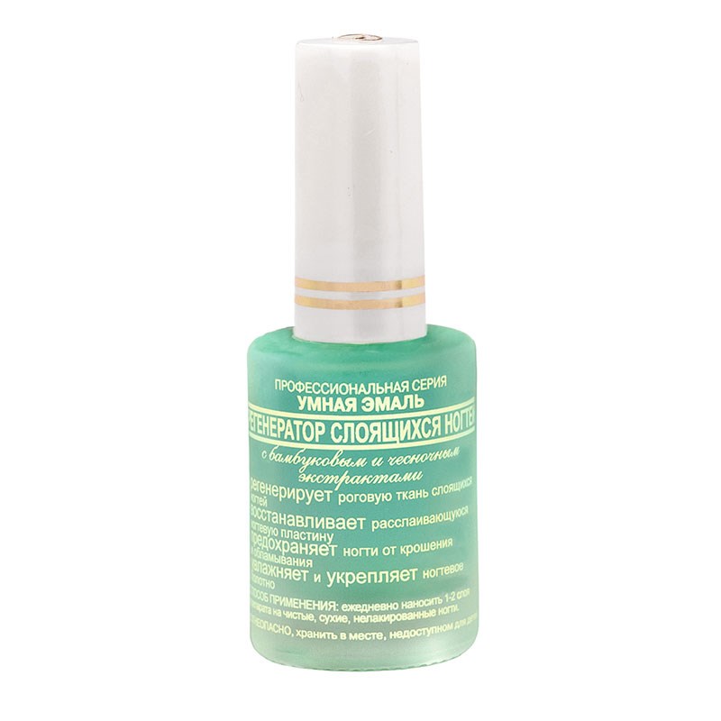 Регенератор слоящихся ногтей Умная эмаль, проникая в основание ногтевого ложе, укрепляет его, позволяя формироваться новому здоровому ногтю. В препарате имеются также особые добавки, склеивающие отошедшие кромки расслоившихся ногтей. Это позволяет защитить ногти от крошения и усилить механическую прочность кончиков ногтей. Результатом использования регенератора слоящихся ногтей становится получение однородной структуры ногтя.