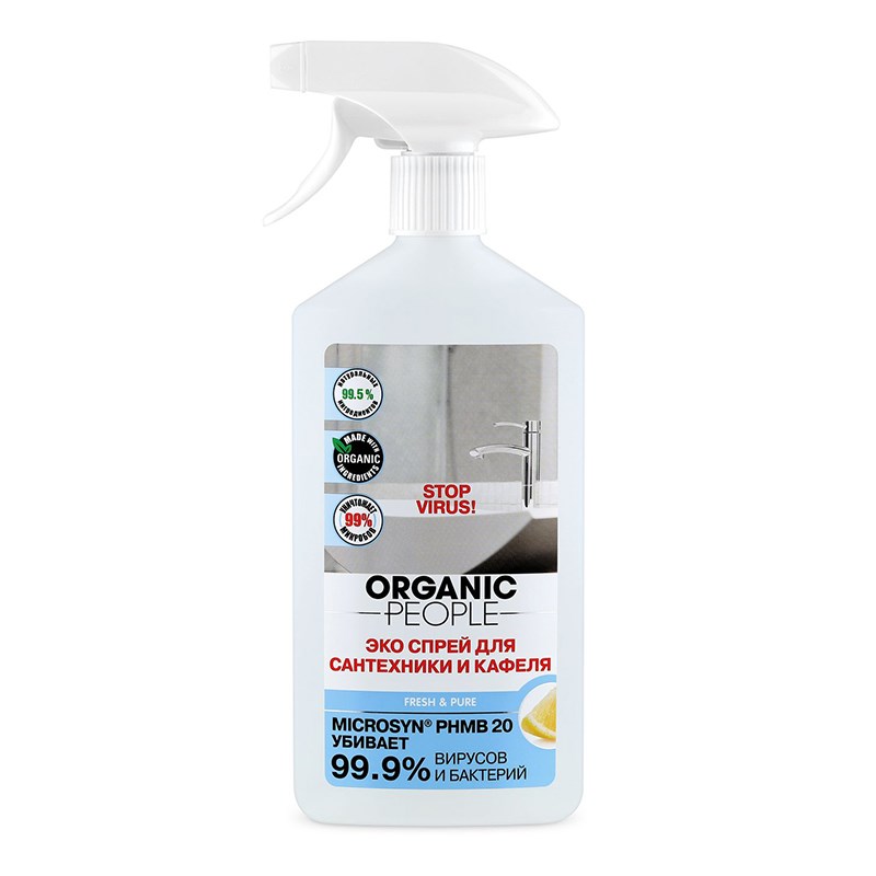 Эко спрей для сантехники и кафеля Organic People - максимально эффективное, безопасное и предельно простое в использовании экологически чистое средство, предназначенное для очищения кафеля и сантехники.